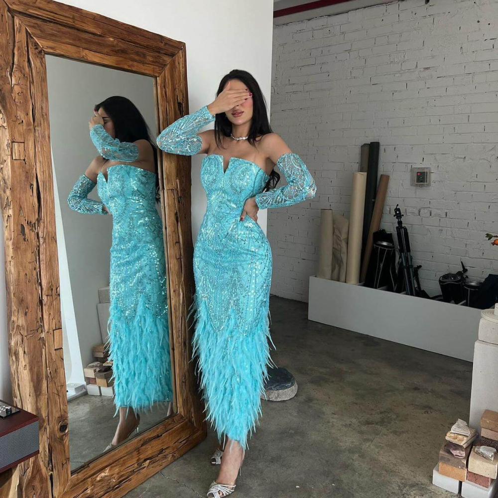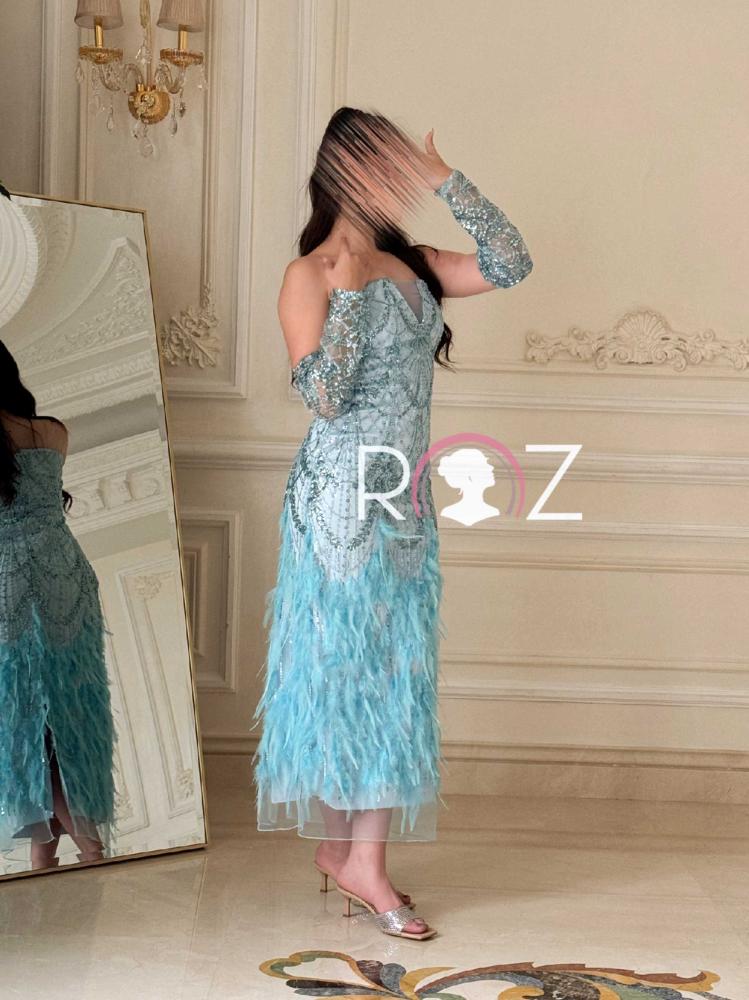نقدم لكي فساتين سهره ناعمه و أنيقة لإطلالتك في المناسبات الخاصة نوفر لجمالك فستان سهرة ريش سماوي يتميز بتصميمه الفريد الذي يلفت الأنظار ويسلط الضوء على جمالك الطبيعي مصنوع من خامات عالية الجودة توفر لك الراحة والأناقة في نفس الوقت.اختاري هذا الفستان الساحر واتركيه يروي قصة أناقتك بأسلوب مميز. ستكونين محط الأنظار في أي مناسبة ترتدينه وستشعرين بالثقة والجمال كلما ارتديتيه. احصلي عليه الآن من متجرنا واستعدي لأن تصبحي نجمة الحفلة.